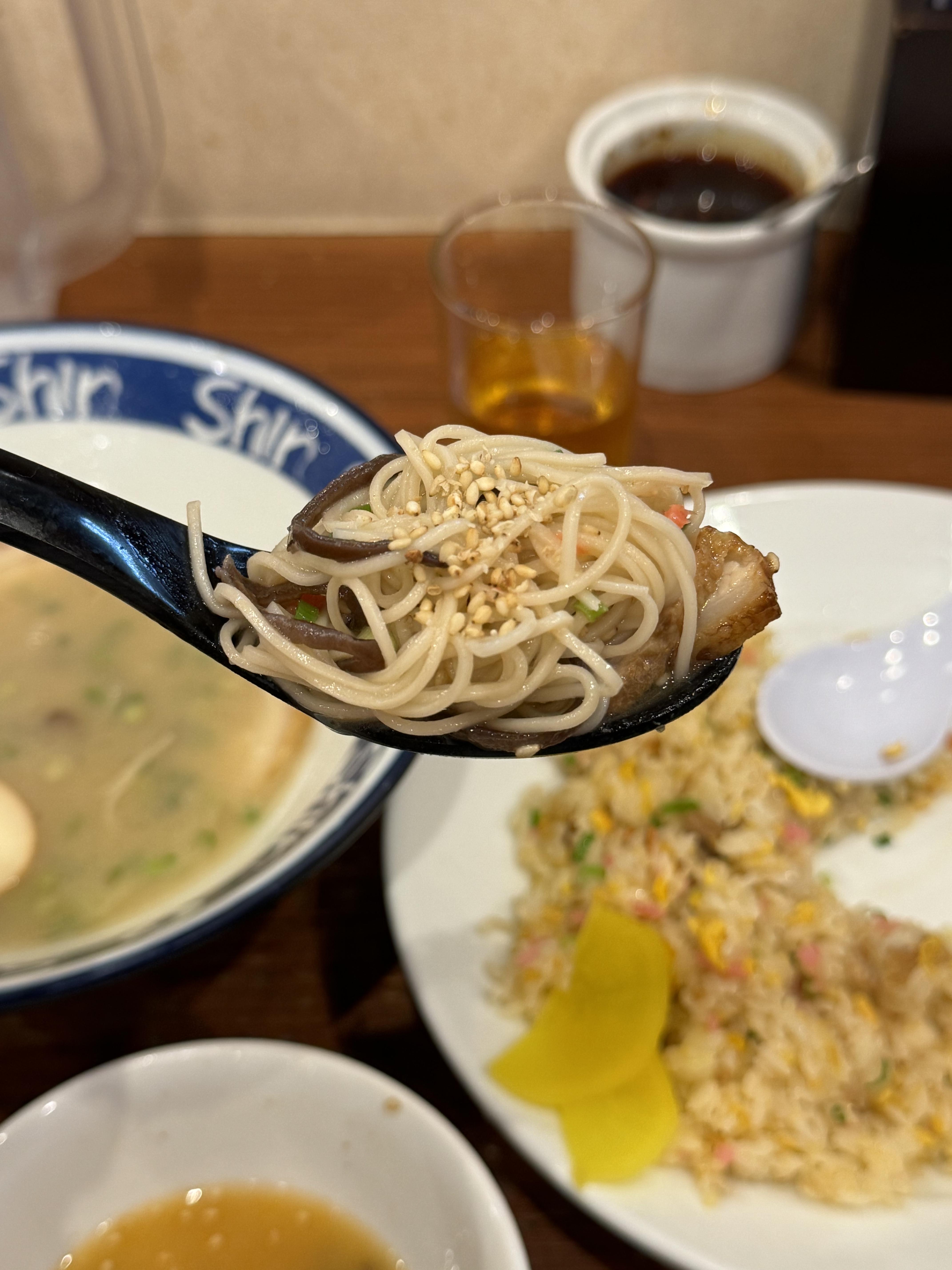 라멘은 생각보다 금방 나오는 편이고, 처음에는 아무 토핑 없이 라멘을 먹어보다가 옆에 현지인? 일본인 여행객? 으로 보이시는 분이 토핑을 이것저것 넣으면서 너무 맛있게 먹어서 우리도 자리에 비치되어 있는 참깨, 생강 등을 같이 넣어서 먹어 보았는데 확실히 좀 더 고소해서 맛있게 먹었다.